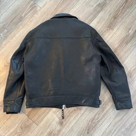 Harley-Davidson motorcykeljakke i sort med orange og hvide detaljer. Jakken har store Harley-Davidson logoer på ryg og ærmer samt broderede detaljer. Foran er der gennemgående lynlås og knaplukning ved ærmerne. Egnet som yderjakke til motorcykelkørsel eller fritidsbrug.