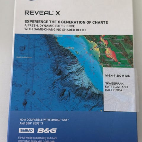 C-MAP Reveal X søkort dækker Skagerrak, Kattegat og Østersøen. Kortet har højopløselig batymetri, skyggerelieff og detaljerede havne- og indsejlingsoplysninger samt information om tidevand og strømforhold.