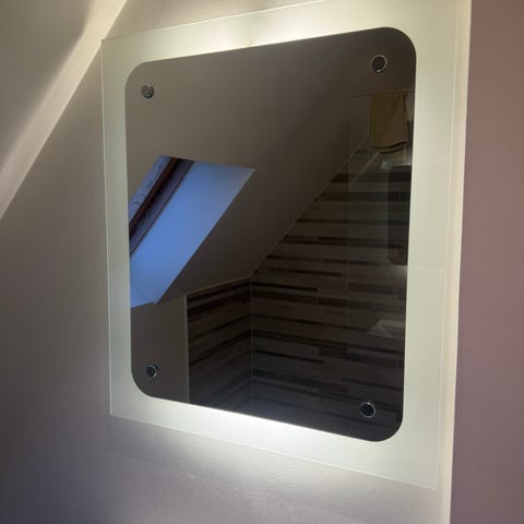 Sættet indeholder runde beslag/knopper og tilhørende monteringsdele til fastgørelse af spejl. Diameter på de runde beslag er ca. 3 cm. Velegnet til montering af spejl på væg i f.eks. badeværelse eller gang.