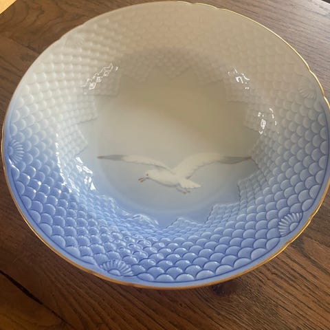 Bing & Grøndahl Mågestel porcelæn tallerkener og fade blå/hvid