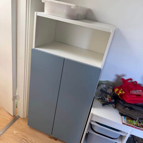 To fine kommode/skabe, de er brugte og trænger til at blive skruet godt sammen da de hælder i skruerne men fint brugbare 30-32 stk børne bøjler kan medfølge