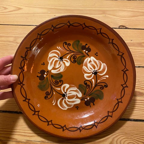 Meget fint gammelt lyserødt fad.