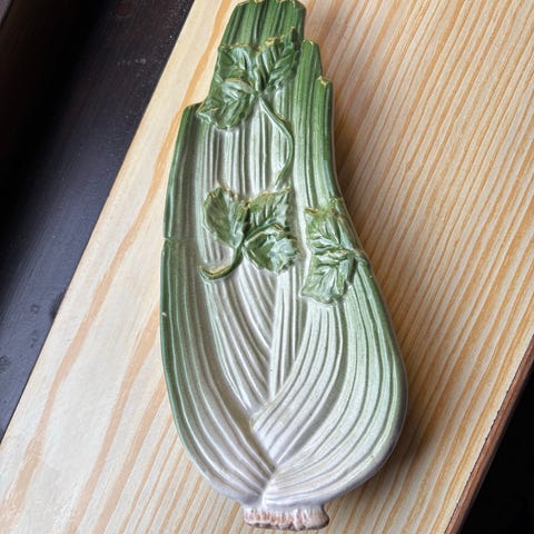 Brocante fajance serveringsfad med kniv i grøn fra Creation A Ferley Vallauris.