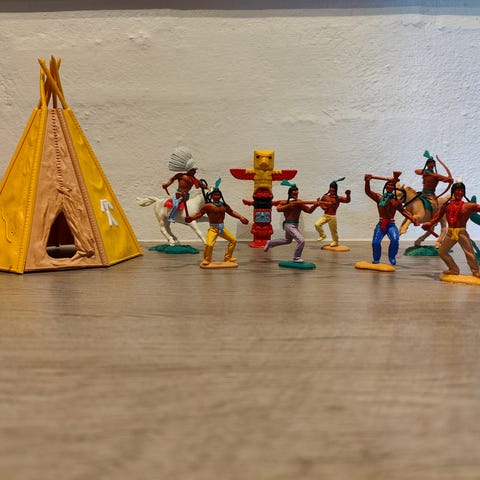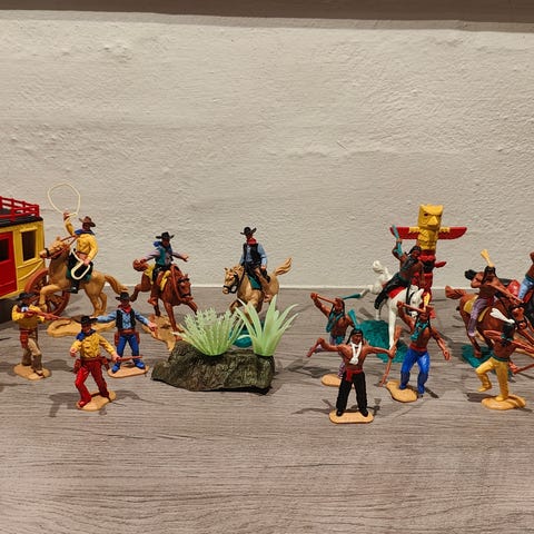 En flok cowboys samt Timpos Praerie Rocket . Købt som beset og sælges kun samlet.