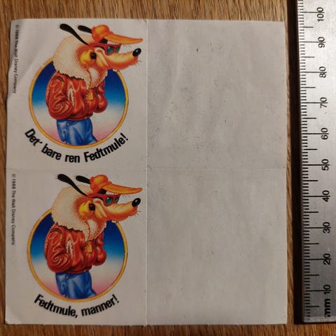 Restark med 3 klistermærker fra et ældre Anders And blad.