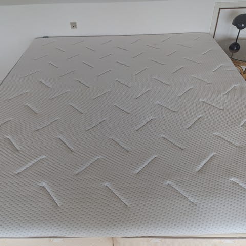 Sleep2Care topmadras i hvidt betræk med quiltet overflade. Madrassen har mønstret top og ventilerende sider. Velegnet som sengemadras i soveværelse eller gæsteværelse. Skal afhentes på adressen 😃