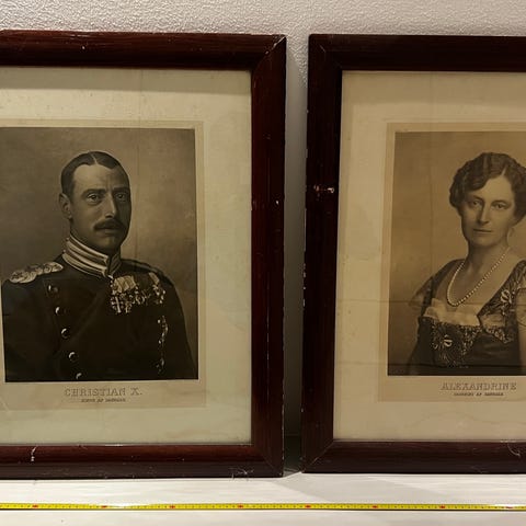Foto i glas og ramme af Danmarks konge Chr. X på den daglige ridetur på hesten Rolf i København under besættelsen 1940-45. Rammens mål er 23 x 16 cm.