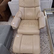 Stor og komfortabel lounge drejestol med matchende fodskammel.