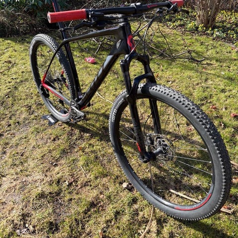 Jeg sælger desværre min Carbon mountainbike af mærket Scott. Få måneder efter køb fik jeg en skade (ikke cykel relateret), og jeg kom aldrig i gang igen. Kort opsummeret, så er den brugt meget lidt, hvilket også kan ses på sliddelene, den er serviceret løbende og har stået tørt hele dens levetid.
