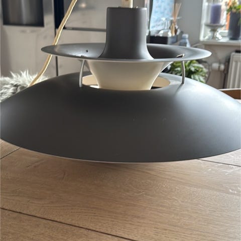 Louis Poulsen PH loftlampe designet af Poul Henningsen. Lampen er udført i hvidt metal med flere skærme, der er konstrueret til at give et blændfrit og jævnt fordelt lys. Velegnet som belysning over spisebord, sofabord eller i opholdsrum. Klassisk dansk designlampe med karakteristisk flerlags-skærmsystem.