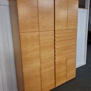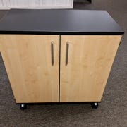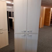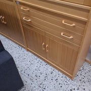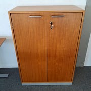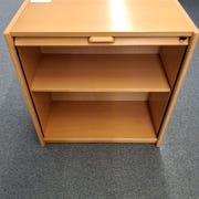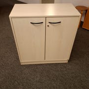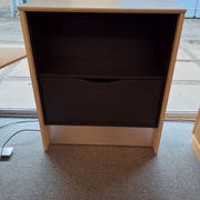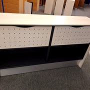 Møblet har en kombination af lyse og mørke overflader, med perforeringer i fronten. Det er lavet af træ og med metal sokkel. Skabet har to flytbare hylder.,Bemærk at mail, chat og beskeder ikke besvares, og varen skal købes på knappen "Gå til varen"