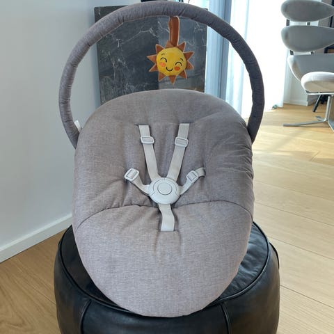 Stokke indsats og aftageligt bord, samt pude. Prisen er samlet for alle dele, men kan godt sælges seperat.