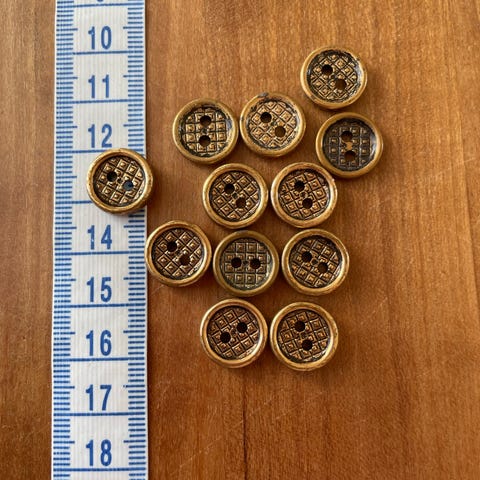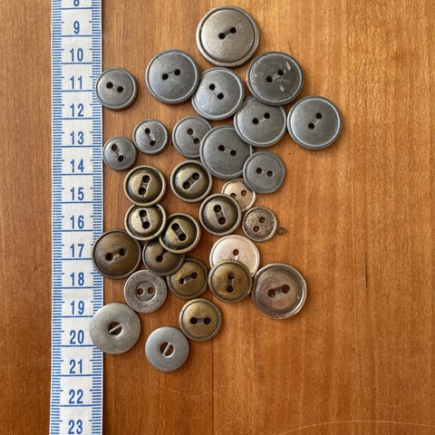 4 forskellige billeder med metalknapper med 4 huller