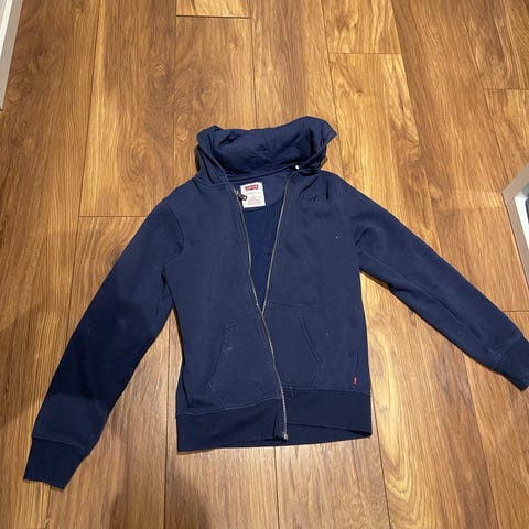 Levi's hættetrøje i str. 164. Super fed og skøn blå farve. Brugt begrænset af en dreng.