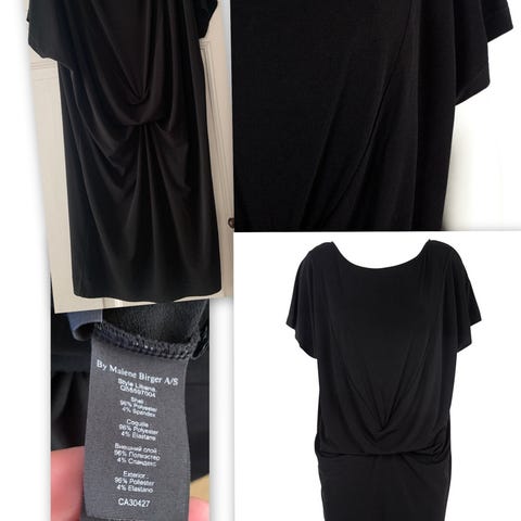 Flot kjole fra By Malene Birger med flot knudedetalje foran. Herudover er kjolen helt enkel med korte ærmer, sidder til foroven og får så større vidde fra talje og ned (se fotos). Farven er mørk oliven. Stylen hedder "Priscilla" og det er en str XL. Passer str 42/44 (materialet er 96% polyester/4 % elastan, så den er meget fleksibel i stoffet). Den er helt ny og ubrugt og stadig med alle mærker. Pris: 500 kr.