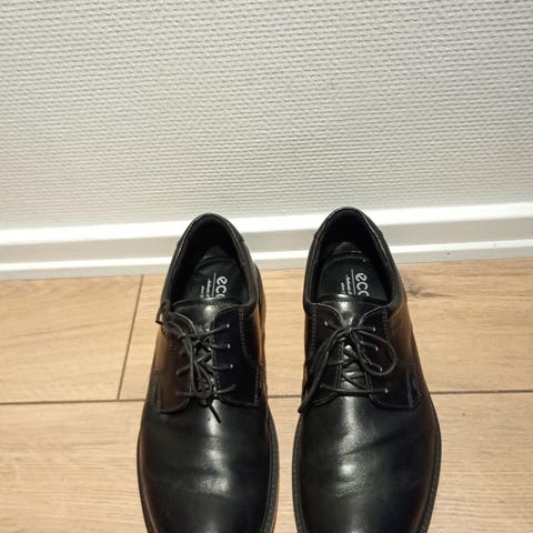 Ecco festsko i sort læder i størrelse 42. Klassiske snøresko med rund snude og synlige stikninger. Indersål med Ecco-logo. Velegnet som herresko til pænt brug, fx til arbejde, fest eller andre formelle anledninger.