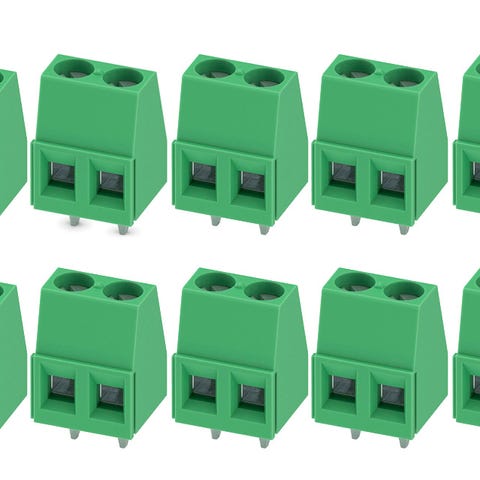 PRIS-MATCH! Phoenix terminal-stik til printmontage (2 pole MKDS) | 2-polet PCB printklemme med 5,08 mm raster. Robust og vlamdæmpende konstruktion til sikker wire-to-board forbindelse med høj strømkapacitet.