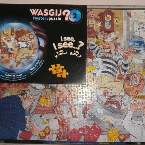 Wasgij puslespil. De fleste lagt én gang i røgfrit hjem. Bytter også gerne til Wasgij eller van Haasteren.