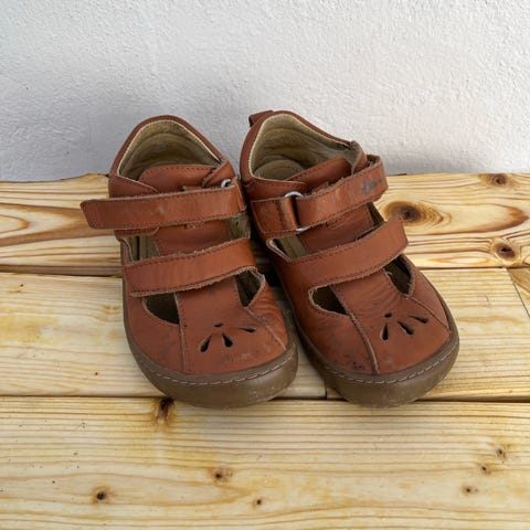 Tikki sandaler til børn i str. 26. Sandalerne er unisex og fremstillet i blå læder med udskæringer, der giver god ventilation. De har lukning med velcrorem over vristen for justerbar pasform. Ydersålen er fleksibel og skridsikker, egnet til hverdagsbrug i sommerhalvåret for både piger og drenge.