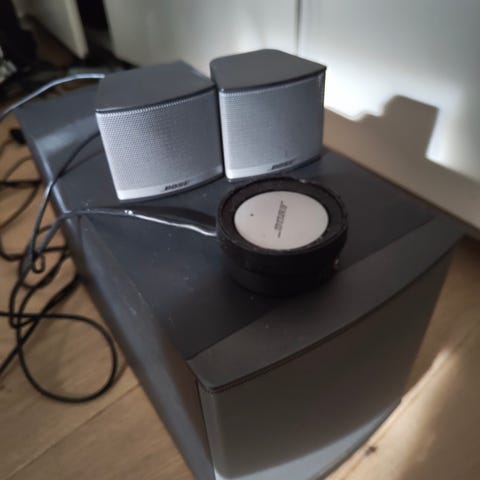 Bose højtalere til brug med computer eller anden lydkilde (AUX). Sættet består af to højtalere i sort design, inkl. strømforsyning.