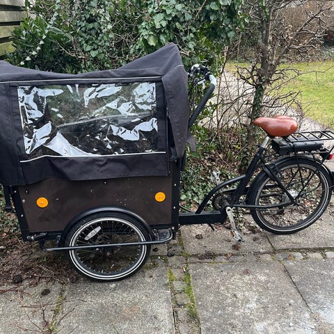 Stor ladkasse som kan bruges til transport, hvis man sætter cyklen i stand.