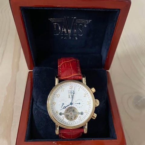 Sælger dette stilfulde herreur fra franske Davis (Retro Collection). Uret har et flot, tidløst Art Deco-look med den rektangulære urkasse, der leder tankerne hen på klassikere som Cartier Tank.