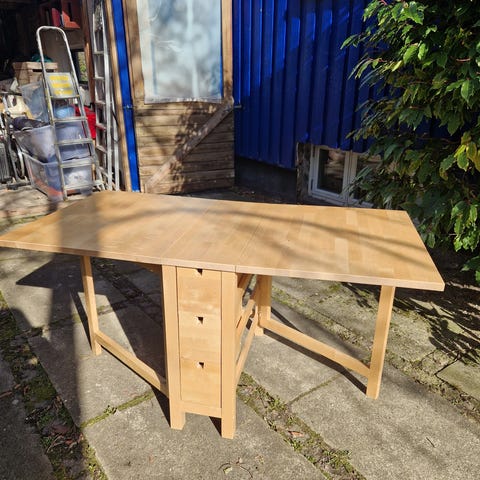 Norberg klapbord fra Ikea, ligeså nyt, bordpladen er blev aldrig brugt, kombinationshøjde 43 cm. Manualen er med i original papkasse.