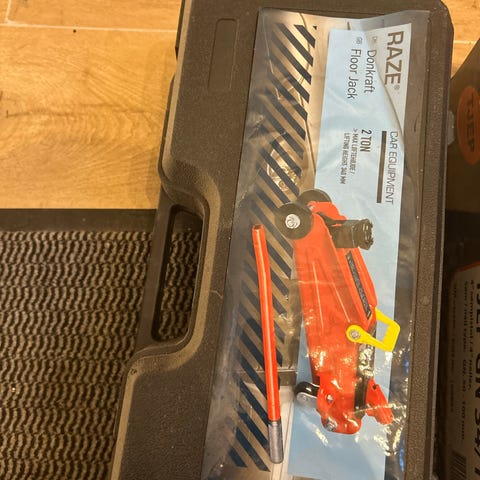 hydraulisk gulvdonkraft. Kapacitet-2 tons. Kan let haves med i bagagerum ell campingvogn.