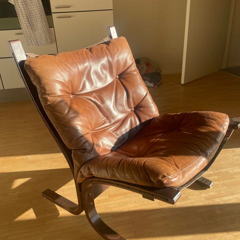 Vi er flyttet til mindre, og har ikke plads til denne dejlige stol.