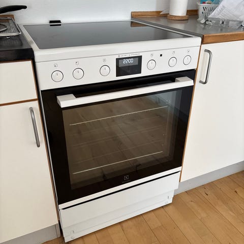 Elektrisk oven, lågen lukker ikke og hængsler skal repareres/skiftes.