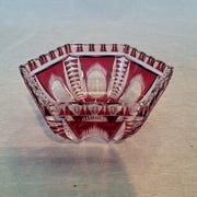 Glas rød/ cerise krystal med slebet mønster