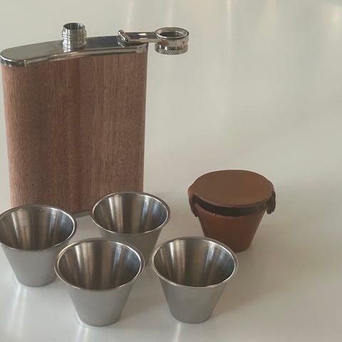 Drikkebæger i læder etui/Flot lommelærke FRA 129,-