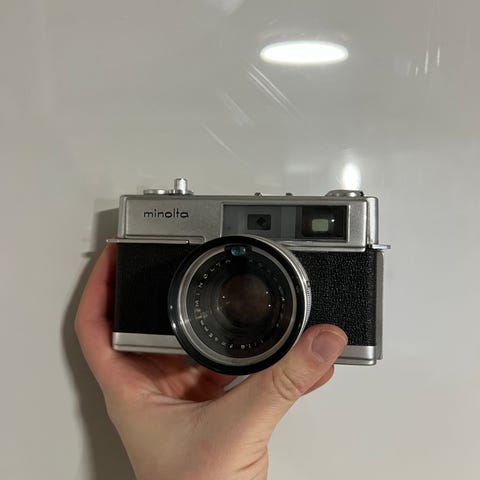 Minolta Hi-Matic 7s analog kamera sølv/sort