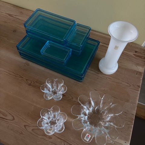 Sæt bestående af fad og fyrfadsstage i klart glas.