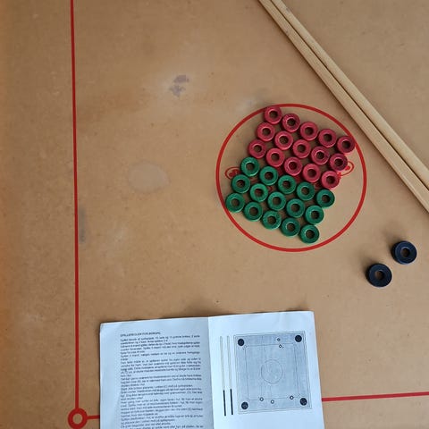 15 røde, 15 grønne og 2 sorte brikker/sten.