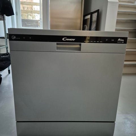 Candy CSF 4575 EX opvaskemaskine, underbygget model i rustfrit stål. Maskinen har frontbetjening med drejeknap og programknapper. Indvendigt er der øverste og nederste kurv samt bestikkurv. Ifølge målnotat er højden ca. 85,5 cm, bredden ca. 44,5 cm og dybden ca. 57 cm, hvilket svarer til en smal model på ca. 45 cm i bredden. Effektforbrug er angivet til 1930 W på typeskiltet. Velegnet til indbygning under bordplade i køkken.