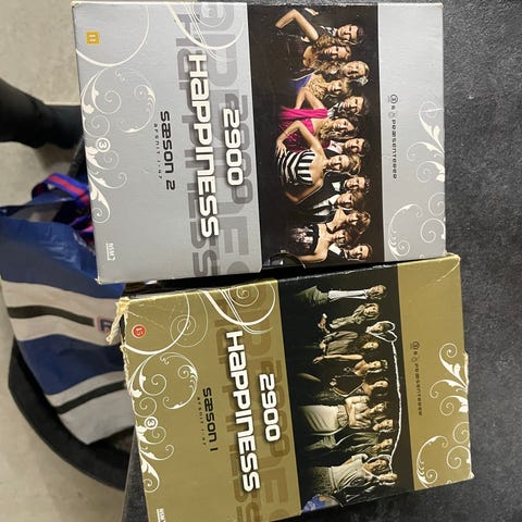 2900 Happiness dvd bokse med sæson 1, sæson 2 og sæson 3. Dansk tv-serie udgivet på dvd i individuelle bokse for hver sæson. Velegnet til afspilning på dvd-afspillere, der understøtter region 2 og dansk sprog. Indeholder afsnit fra alle tre sæsoner af serien 2900 Happiness.