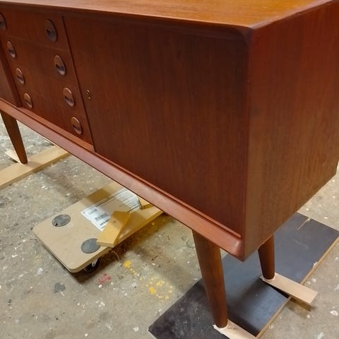 Sæbehandlet skænk 2 låger, 4 skuffer. 120 cm lang, 45 cm dyb, 92 cm høj.