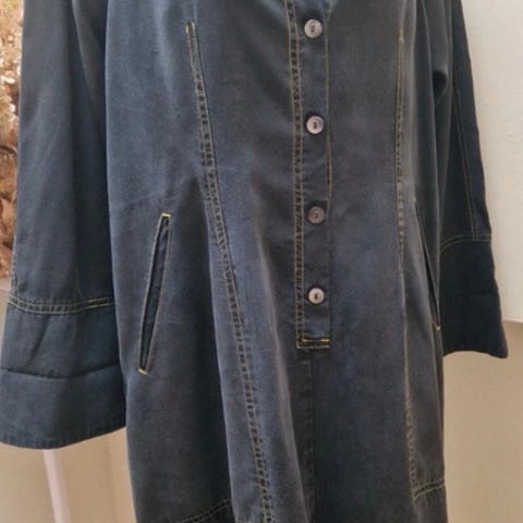 Fuld længde 130 cm. Bredde målt lige under ærmegab 58 cm.