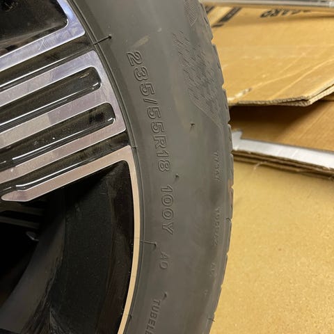225/55 R18, kørt ca. 6000 km, så masser af mønster tilbage. Har siddet på Volvo EX30