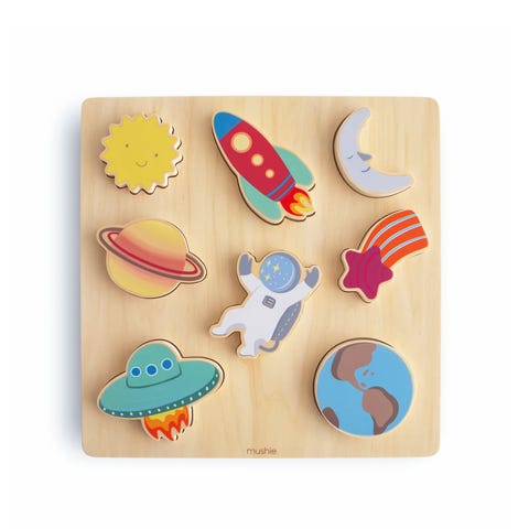 Mushie stabeltårn med ringe i farvekombinationen "Original".