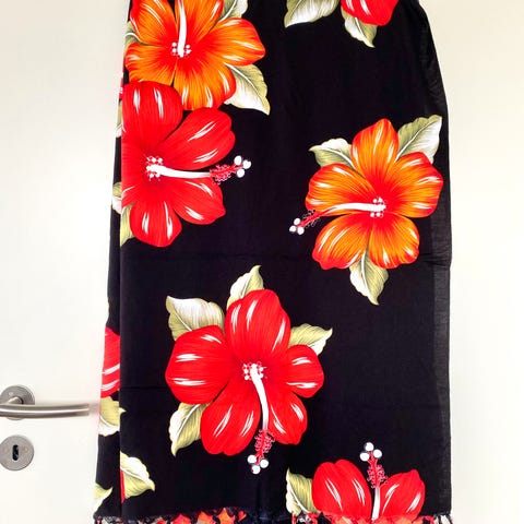Sælger dette fine og farverige tørklæde fra det amerikanske mærke Candie's. Tørklædet har et iøjnefaldende print med fugle i smukke farver, omkranset af en lyserød prikket kant og sort ramme.