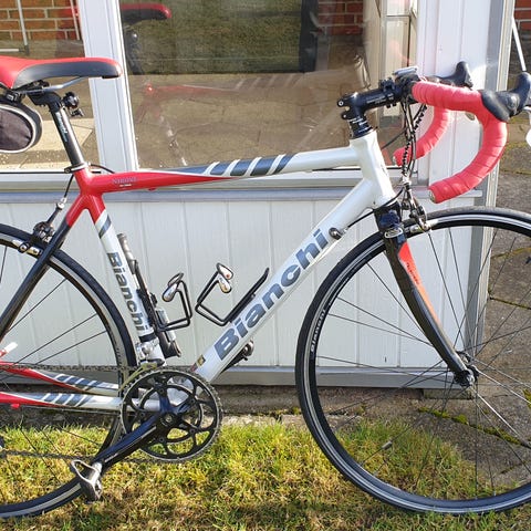 Meget velholdt Bianchi racer, alu stel, for- og baggaffel i carbon. Stel str. 52 cm.