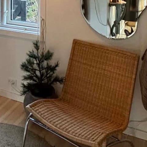 Stolen er fra slut 90’erne, og står flot vintage stand, med enkelte brugsspor. Fast og stabil. Puden er uden pletter.