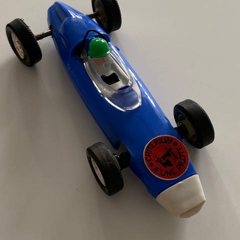 Æske med forskellige gl. biler og dele til racerbane, mest Scalextric.