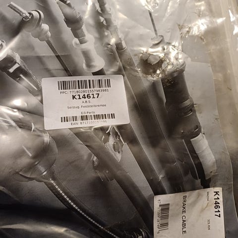 1originale Ford håndbremsekabel (OEM reservedel). Kablet er fabriksnyt og ligger stadig i den originale emballage. Ved at vælge en original del sikrer du perfekt pasform og en længere levetid sammenlignet med uoriginale alternativer.