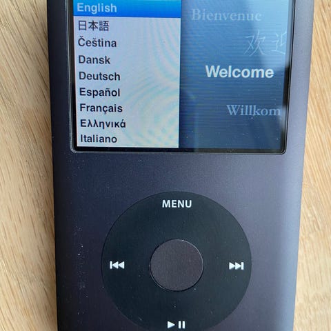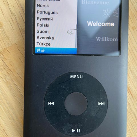 Apple iPod bærbar musikafspiller med 160 GB lagerkapacitet. Enheden har klik-hjul til navigation, farveskærm og hovedtelefonudgang på toppen. Tilslutning til opladning og data sker via dock-stik i bunden. Velegnet til lagring og afspilning af musik, podcasts og andre lydfiler. Farve: sort front med sølvfarvet bagside.