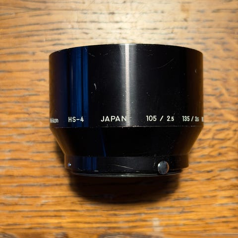 Orginal Nikon HN-3 modlysblænde som er lavet til Nikons klassiske 35/1,4 , 35/2.0 og 35/2.8 og fungerer sikkert også fint på andre optikker med 52mm filtergevind. Lavet af metal.
