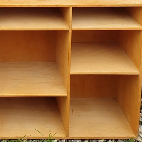 At-bo bogkasse / reol / kommode med skuffer. Masser af patina. Flere billeder kan skaffes. Står i sommerhus i Jylland og kan hentes der eller kan fragtes til København i april. Mål 70x70x34,5 cm.