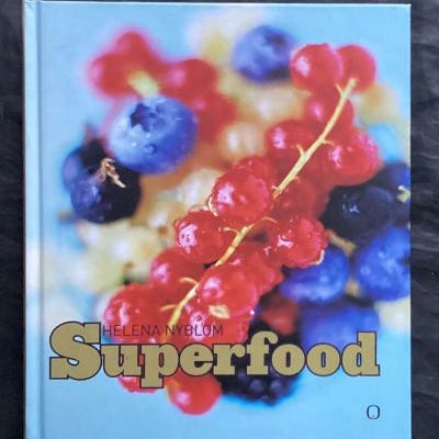 Helena Nyblom Superfood kogebog med opskrifter og information om superfoods. Bogen indeholder både tekstafsnit og illustrerede opskrifter med ingredienslister og fremgangsmåder. Indbundet udgave fra forlaget Olivia, velegnet som inspirationsbog til madlavning med fokus på næringsrige råvarer.